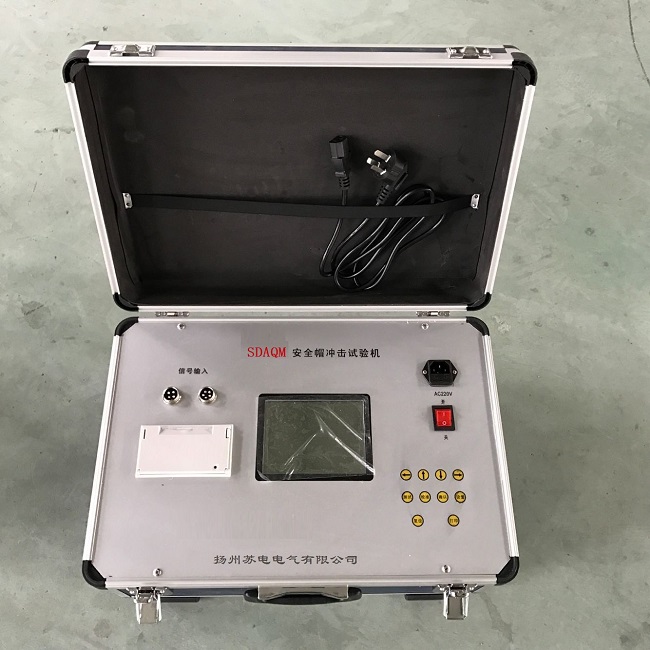 头盔安全帽强度冲击试验机是微电脑控制,自动打印及数据保存功能,专门用于测试各种建筑、煤炭等行业人体佩带用安全帽的抗冲击性能。本产品广泛应用于各安全帽的生产、检验、监督、研究及使用单位。 安全帽冲击试验机测定安全帽抗冲击性能时,将戴好安全帽的特制人头模型放置在高灵敏度的传感器上,然后用规定质量的铁锤(5KG)从1m的高度进行冲击,并由高灵敏度的力量感应装置测出冲击瞬间的力值,从而判断安全帽冲击吸收性能的好坏。 安全帽冲击试验机测定安全帽的耐穿透试验时,先将头模固定在基座上,使头模与穿刺锤及电接触显示装置形成一个闭合电路,然后用穿刺锤(3KG)从1m高度下落穿刺安全帽,穿刺后观察电接触显示装置,判定安全帽的耐穿透性能的好坏。 2、产品介绍: