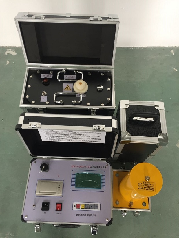SDVLF-30/1.1 | 30kV (峰值) | 0.1Hz,≤1.1µF | 10A | 控制器:4㎏ 升压体:25㎏ | 10kV电缆、发电机交流耐压试验 |
