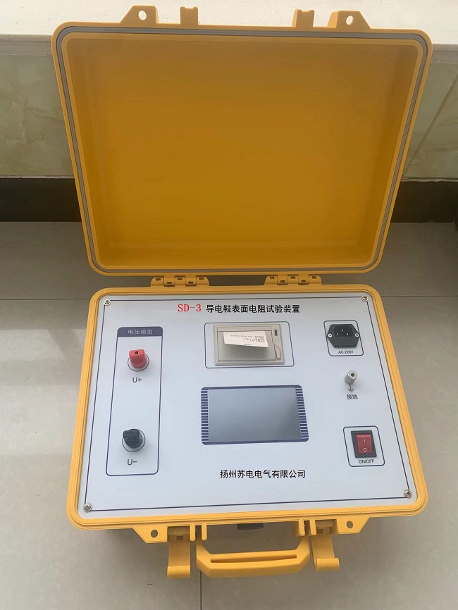 导电鞋表面电阻试验装置 是用于测量电力安全工器具导电鞋的电阻。主要为了发现 导电鞋的隐患而进行的预防性试验。遵照《GBT 6568-2008 带电作业用屏蔽服装》、 《DLT 976-2017 带电作业工具、装置和设备预防性试验规程》要求,导电鞋的 的电阻不大于 500Ω。不仅制造厂在出厂时必须按这一标准检验,合格后才能出