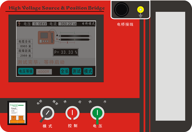 08、烧穿/电桥模式切换采用高压电子开关,不需要手动机械转换开关,操作简单 可靠,在相应的工作模式下,液晶屏会提示相关的接线方法,以防误操作,方便使用者操作。