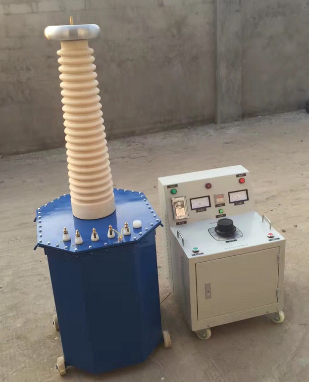试验变压器铁芯为单框式。线圈采用同芯圆筒多层塔式结构,初级低压绕组绕在铁芯上,次级高压绕组绕在低压绕组外侧,这种同轴布置减少了绕组间的耦合损耗。高压硅堆用特殊工艺封装在套管内,产品的外壳制成与器芯配合较佳的八角形结构,整体外型美观大方。