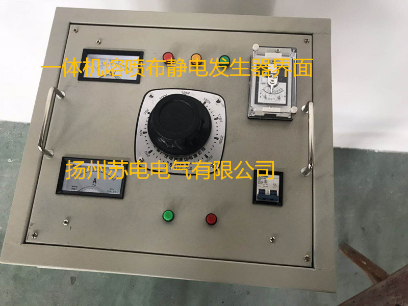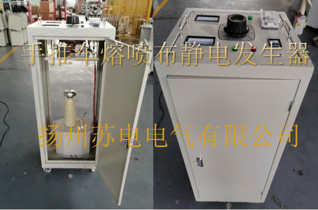本公司是专业生产高压测试设备及稳压设备的专业厂家,扬州苏电新研制开发了一款手推式熔喷布驻极静电发生器是在原有的分体式熔喷布静电发生器的基础上更新成一体机,本设备操作简单、移动方便、蕞大的特点是对人身安全。扬州苏电生产的熔喷布高压静电发生器,用于静电除尘,可持续稳定给静电驻极设备提供稳压电源,确保驻极设备长时间高效工作,为90级、95级、99级品质熔喷布提供有力质量保证,为保证熔喷布的质量尤其重要。