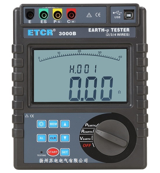 扬州苏电电气有限公司生产的ETCR3000B接地电阻/土壤电阻率测试仪专为现场测量接地电阻、土壤电阻率、接地电压、交流电压而精心设计制造的,采用新数字及微处理技术,精密4线法、3线法和简易2线法测量接地电阻,导入FFT(快速傅立叶变换)技术、AFC(自动频率控制)技术,具有独特的抗干扰能力和环境适应能力,重复测试一致强,确保长年测量的高精度、高稳定性和高可靠性。其广泛应用于电力、电信、气象、油田、建筑、防雷及工业电气设备等的接地电阻、土壤电阻率、接地电压、交流电压测量。