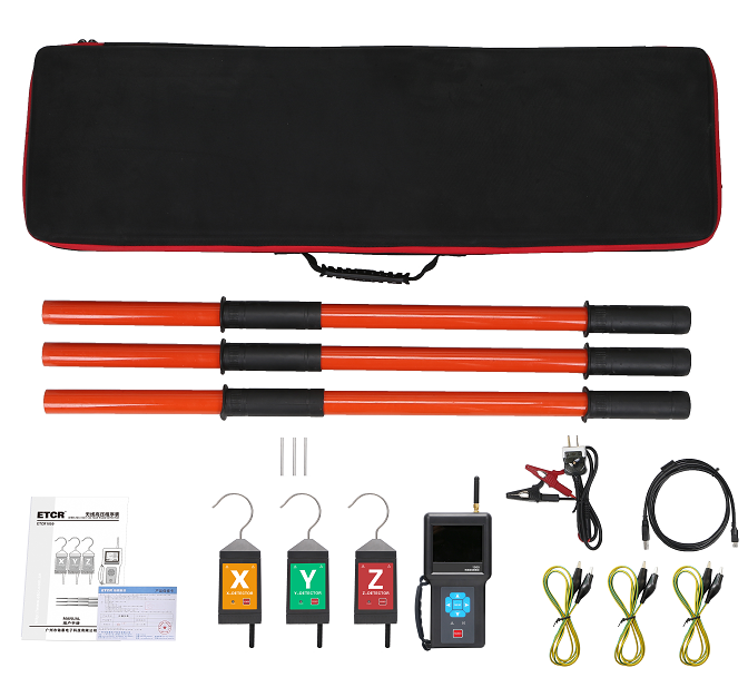 随机附件 | 主机1件、探测器3件、探针3件、探勾3件、绝缘杆3件、USB数据线1根、LR6电池15个、 检验线1条、环网柜测试线3条、布包1件 |