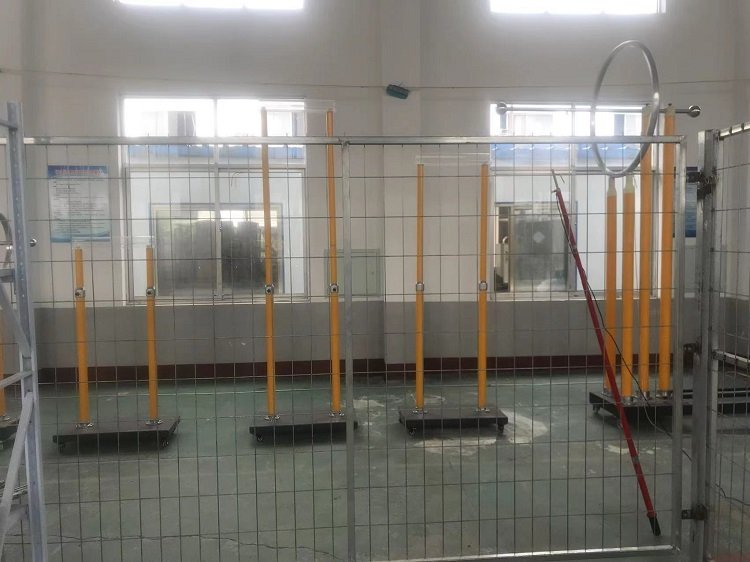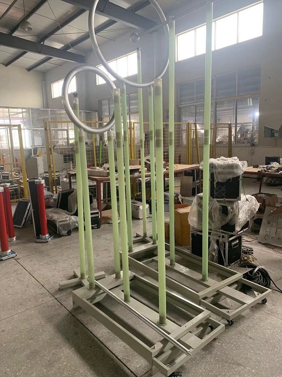 一、概述根据国家能源局发布的《DL/T 740-2014电容型验电器》电力行业标准,规范了电容型验电器的检测标准和相关技术指标,本公司根据此标准研发生产出,SDYD- I型、SDYD- Ⅱ型电容型验电器启动电压试验架。SDYD- I型试验架适合10kV~35kV规格的验电器测试使用,SDYD- Ⅱ型试验架适合66kV~500kV规格的验电器测试使用。本验电器启动电压试验架具有结构简单,运输、组装、使用方便等优点,试各级电力公司安全工器具检测部门,和具有电力安全工器具检测资质的试验室理想的测试试验设备。二、设备结构本验电器启动电压试验架主要由:1、试验架底座;2、绝缘支柱;3、环形电极;4、球形高压电极伸缩杆四部分组成。验电器启动电压试验架验电器启动电压试验架参数型号 均压环对地高度(mm) 均压环直径(mm) 电极球直径(mm) 球电极杆长度(mm)1500 550 60 900~16002500 1050 100 1200~2200
